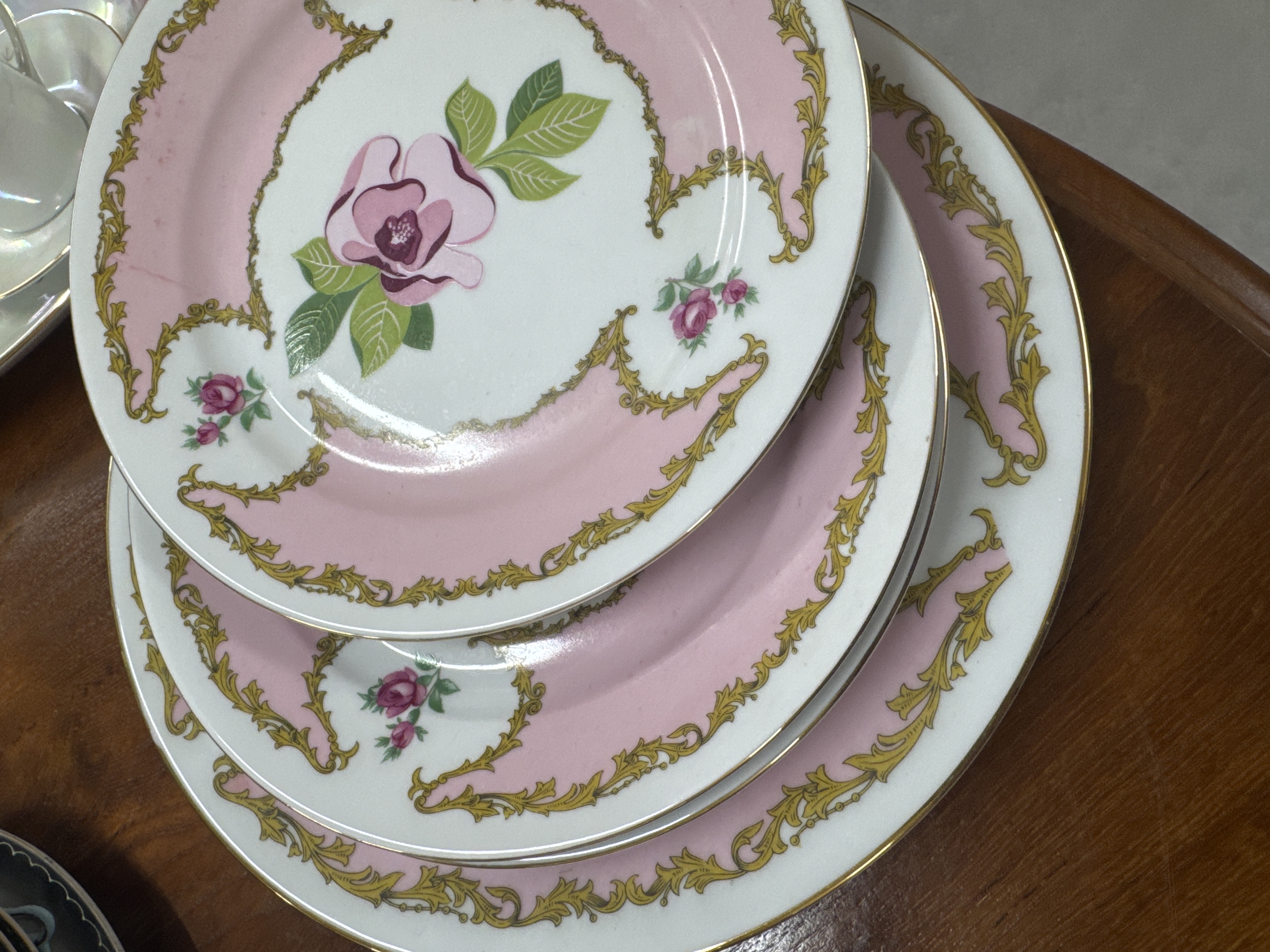 ვარდისფერი თეფშების ნაკრები